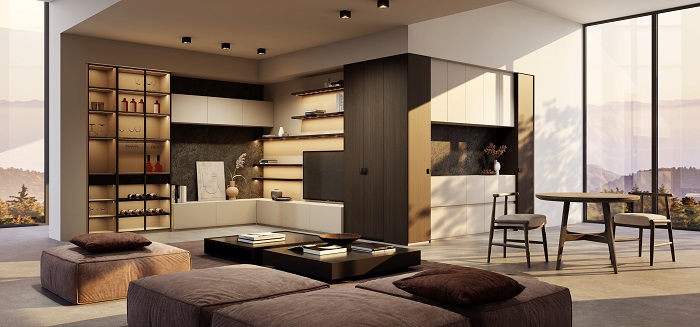 系列遵循少即是多的原則,以烤漆和原木色為主,穿插大理石云紋點(diǎn)綴,通過線條和平面的修飾,彰顯現(xiàn)代極簡主義的藝術(shù)格調(diào)。