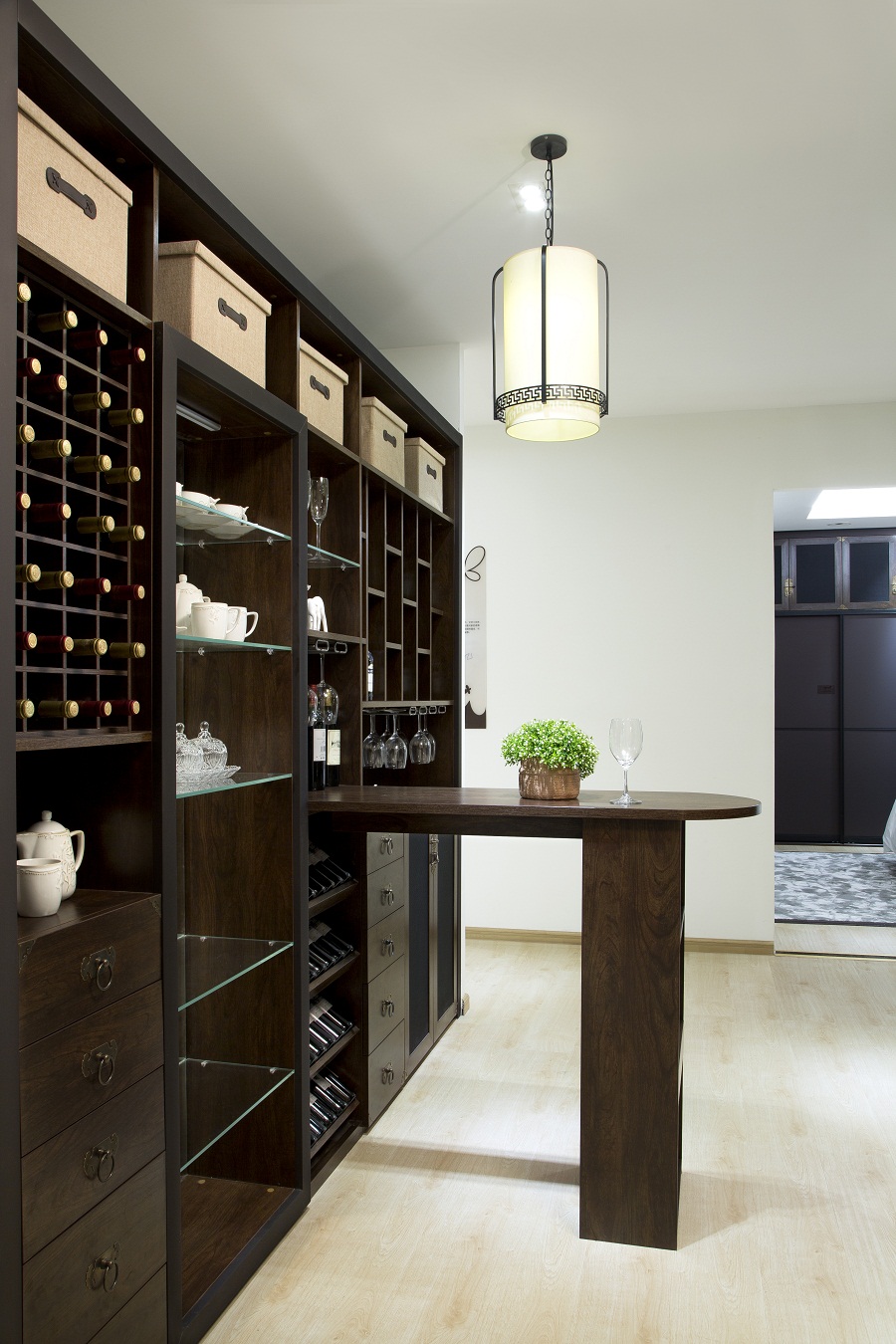 主臥空間的裝飾沒有動用太多筆墨,一幅竹林畫搭配地面木紋,輕易將中式的美感勾勒出來。獨立的衣帽間,根據墻面內嵌,對空間充分利用,把那些邊角的空間也都變廢為寶。