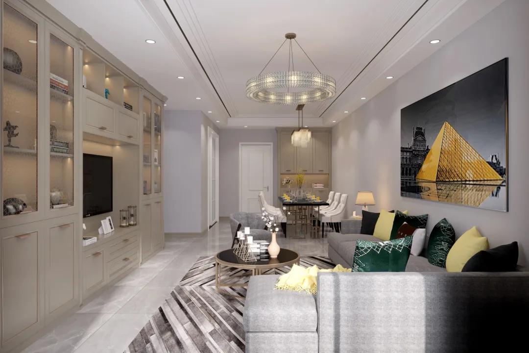 造型以矩形為基本構(gòu)架的空間設(shè)計里,電視柜與入戶柜都顯得非常厚實(shí)大方,融入歷史的裝飾主義,運(yùn)用相對古典的對稱結(jié)構(gòu),又帶入具有現(xiàn)代意義的金屬與LED等裝飾,多樣化使不同的風(fēng)貌并存,十分新潮。