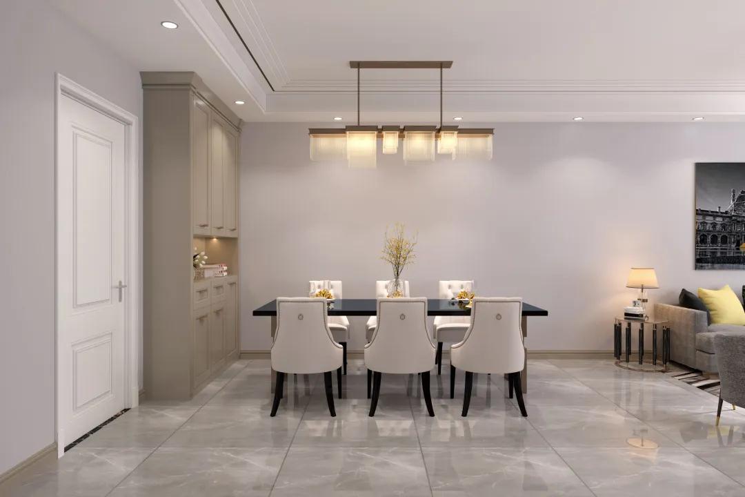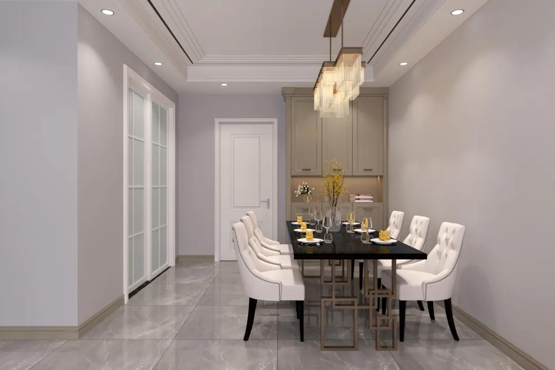 在光、影相襯的通透空間里設(shè)計了用餐廳,讓用餐氛圍更加溫馨。貼合空間做嵌入式的餐邊柜,節(jié)省空間的同時也讓顯得整潔統(tǒng)一。餐邊柜腰部作為開放置物區(qū),上下封閉區(qū)域儲納非常好,即使空間小,吃飯也要吃出浪漫氛圍