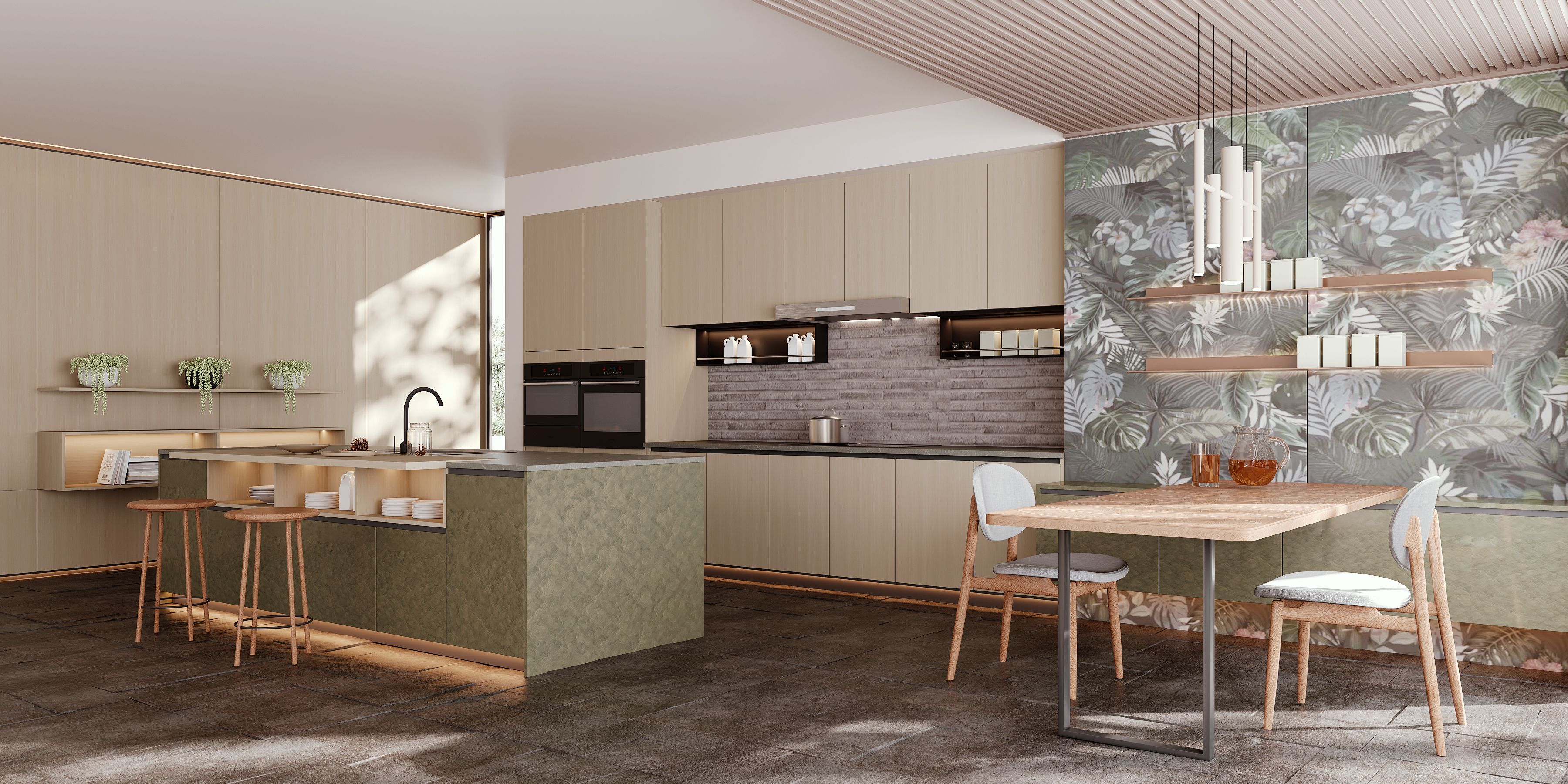 人間四月芳菲盡,山寺桃花始盛開。產品以原木色為主,結合石紋質感紋理,營造出室內芳香繚繞、心曠神怡的意境。