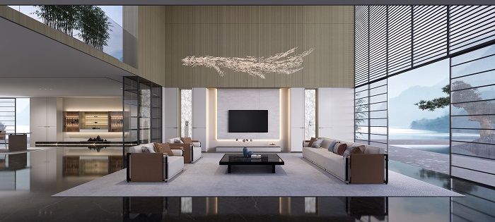 以現代設計語言表達東方意境,多元素、多材質交互融合,提煉雅居空間的禪韻之美,造就一方素雅別致之所。